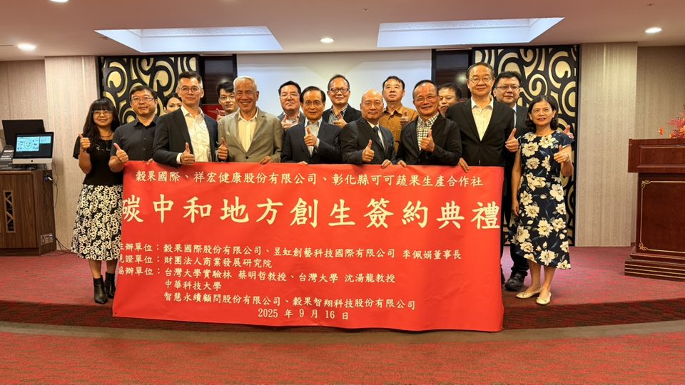 本次簽約在財團法人商業發展研究院董事長許添財、院長王建彬見證下,並有台灣大學實驗林管理處蔡明哲教授,惟由江博能教授代為出席、台灣大學沈湯龍教授及中華科技大學等學術單位的技術支援,共同宣示推動「AI智農・創糧・創能・創富」永續循環計畫,為台灣農業與地方產業開創低碳轉型新典範。